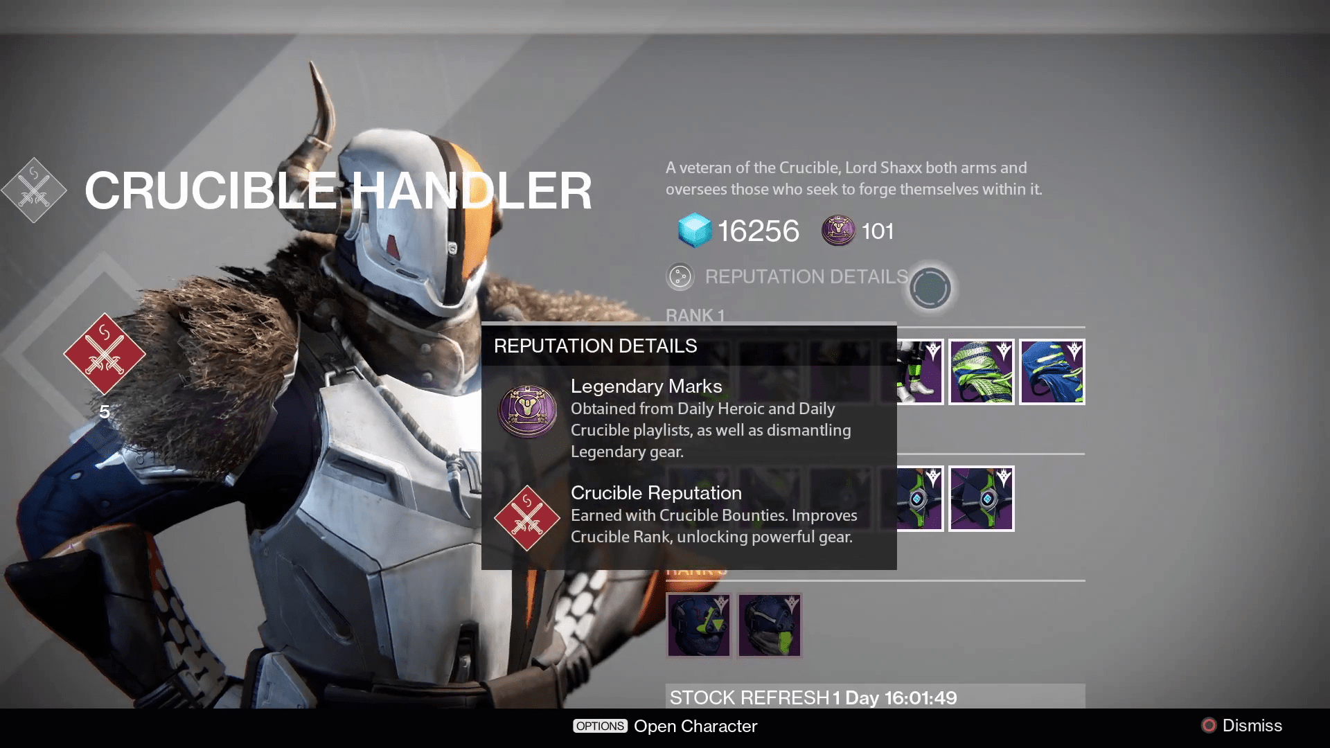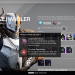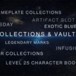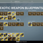 - inventaire : coffre, artefact, infusion, boost xp (lvl25), collection revêtement, « armsday », « nameplate collection », exotique « blueprint », écus légendaires