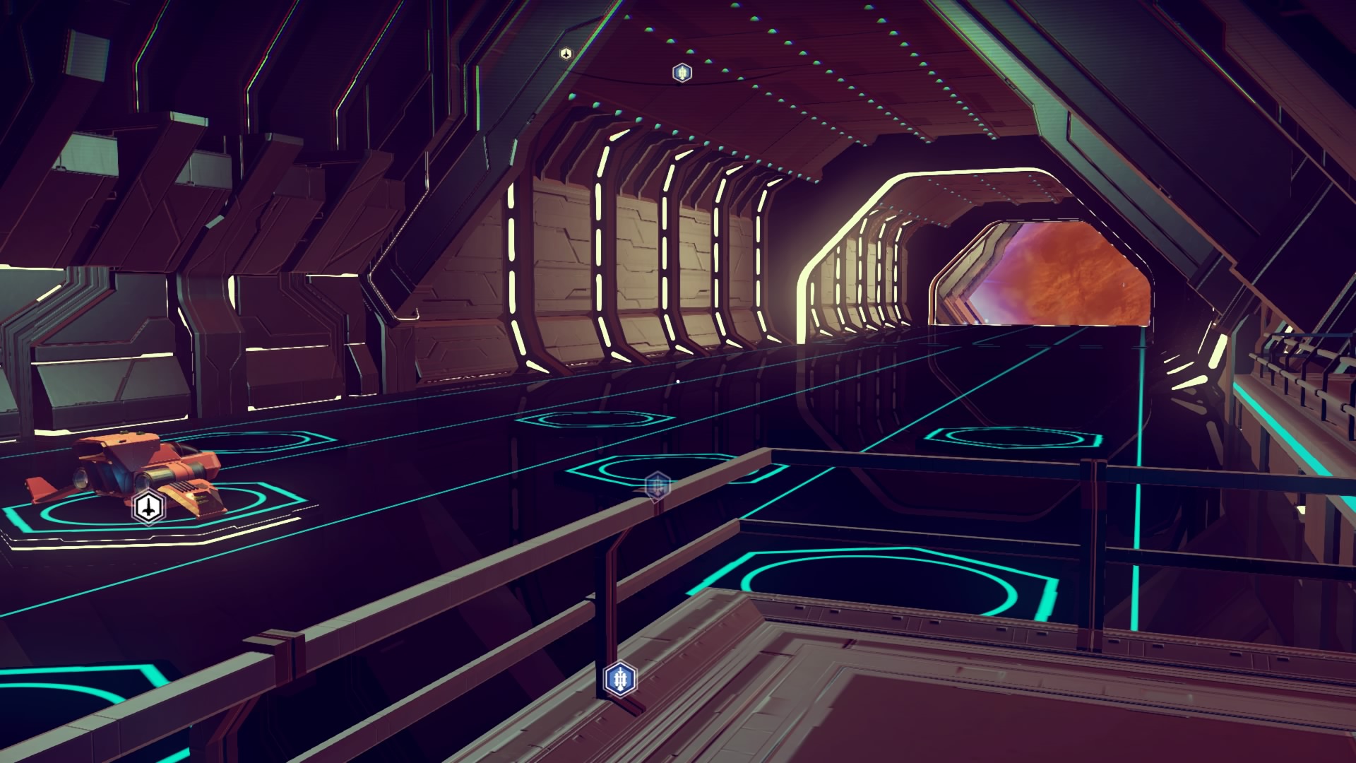 A l’intérieur c’est assez vide, on y trouve un parking où les E.T de passage font escale quelques instants, l’occasion de faire un peu de commerce ou d’acheter un nouveau vaisseau si on est blindé de crédits. Il y également un terminal de vente et un NPC aussi triste que celui rencontré un peu plus tôt.