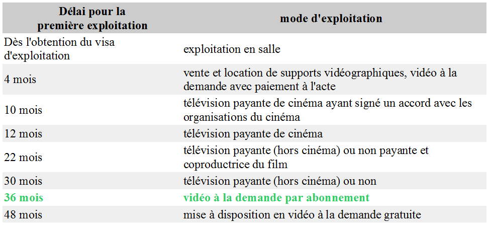 Netflix respectera également la Chronologie française des médias, à savoir qu’il faut respecter un certain temps entre l’obtention du visa d’exploitation d’un média et sa mise à disposition à la TV ou en VOD. Voici les critères mis en rigueur depuis le 6 Juillet 2009 :