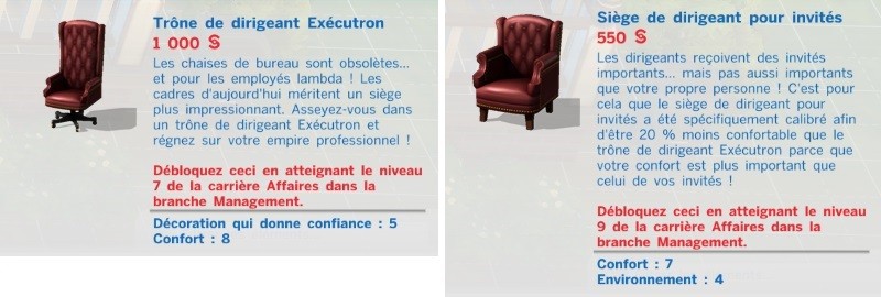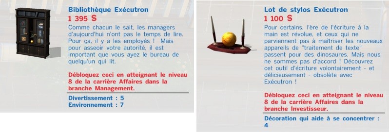 Voici les deux pièces pré-définies par Maxis correspondant à ces deux carrières :