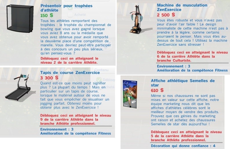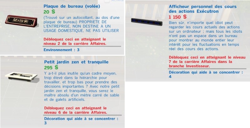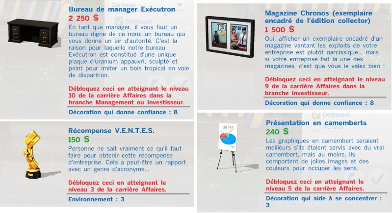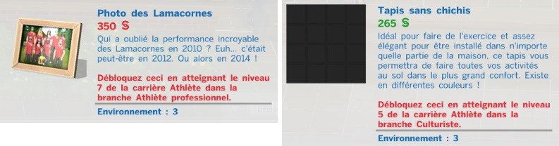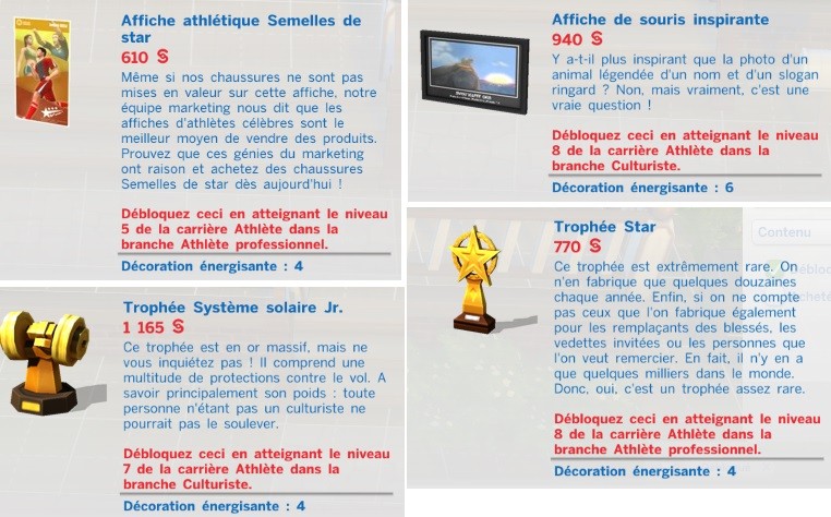 Et voici les objets que ces carrières débloquent :
