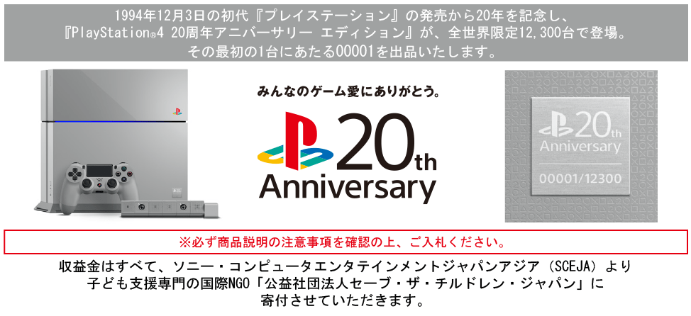 La somme récoltée par cette vente aux enchères ira à l’association Save the Cildren Japan. De plus, chaque Tweet posté contenant #ps_20th_love apportera un bonus de 20¥ (0€15) au pactole, à vos Tweets !