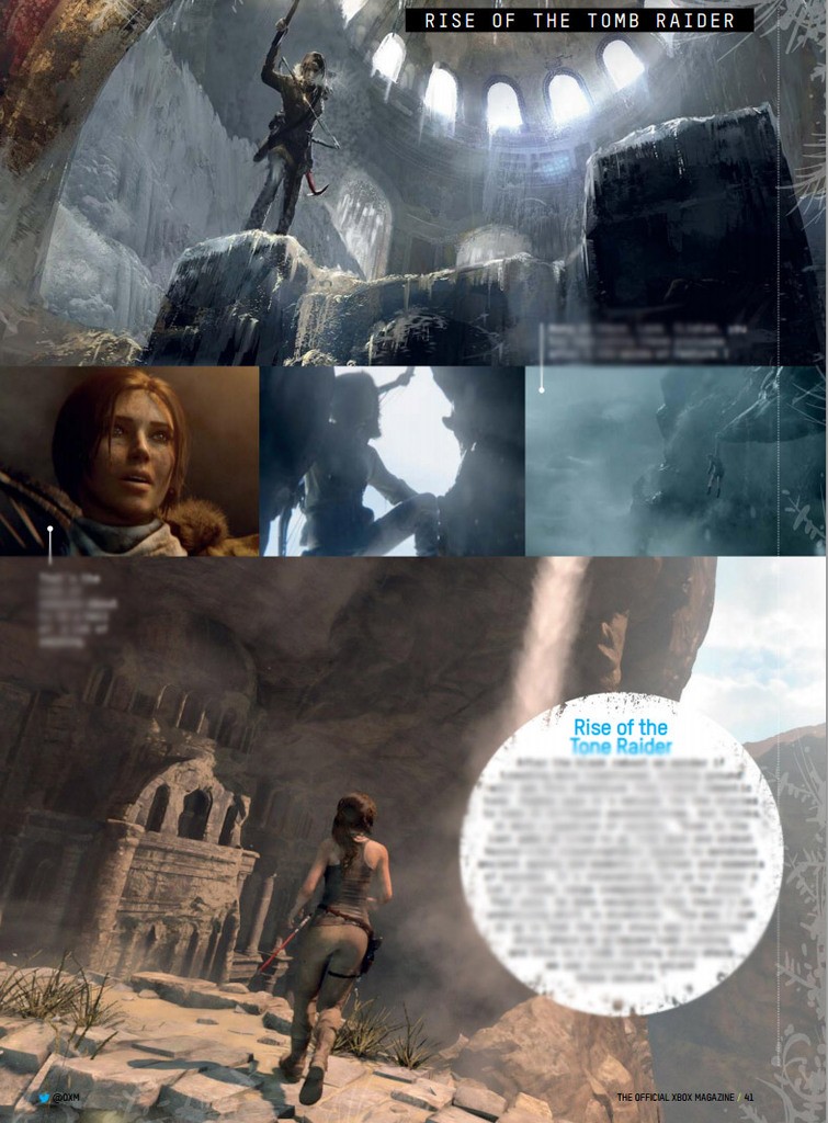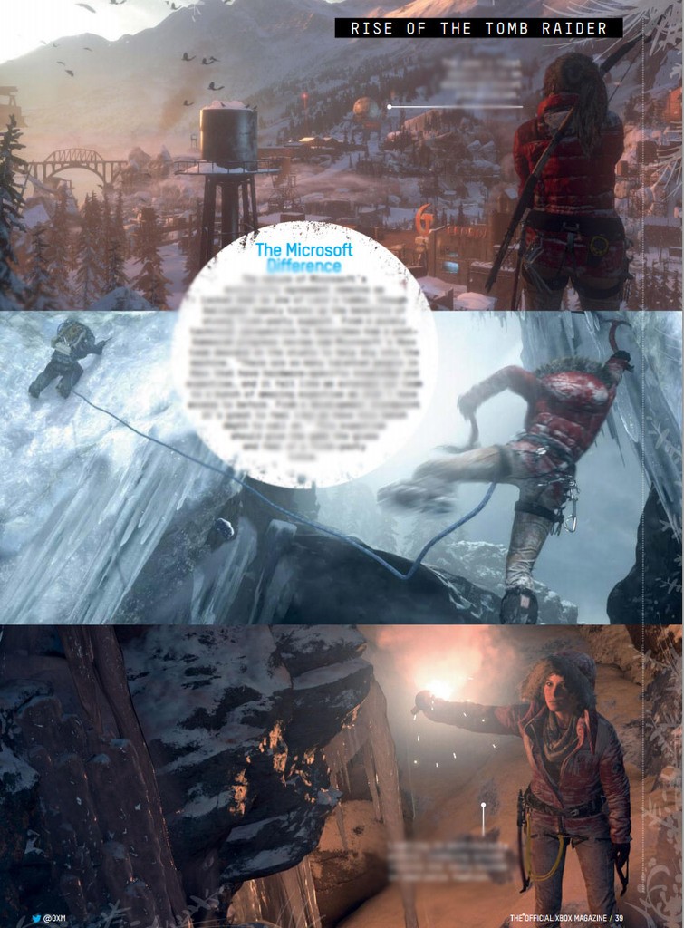 Le magazine officiel Xbox au Royaume-Uni (OXM) contient de nouvelles images de Rise of the Tomb Raider. Pas de nouvellse informations par rapport aux premiers détails parus dans Gameinformer, mais des screenshots inédits.