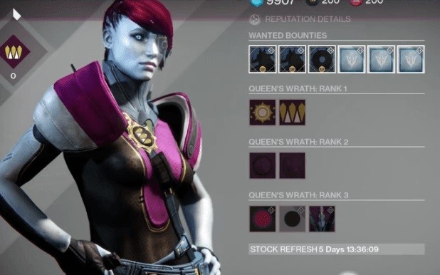 Vous vous souvenez d’elle ? C’est l’émissaire de la Reine, elle était présente sur la Tour lors de l’événement l’Ire de la Reine. Et bien la voici de retour sur le Récif et elle a du travail à refourguer. C’est ce NPC qui vous guidera à travers les missions histoire de ce DLC.