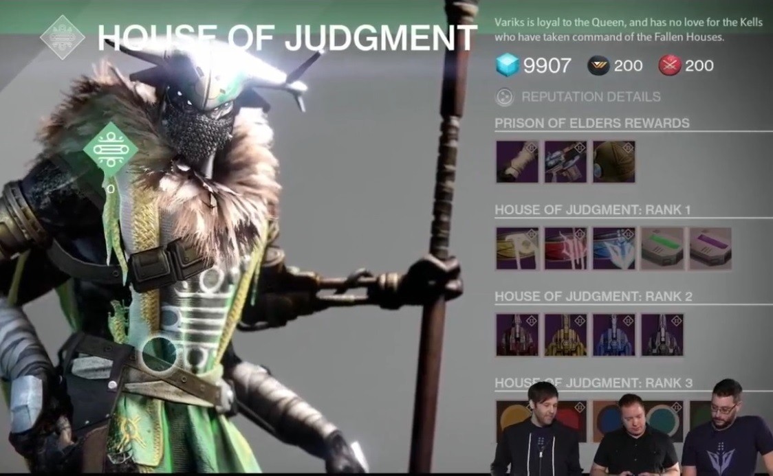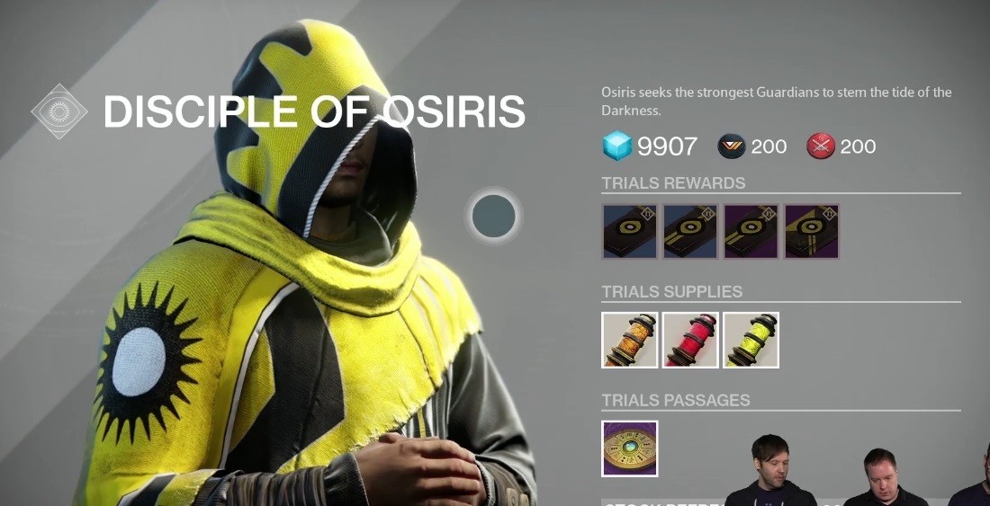 Ce disciple d’Osiris est l’émissaire de l’activité PVP « Les Epreuves d’Osiris« . A l’instar de Variks il proposera des récompenses et des consommables qui influenceront les résultats de vos victoires et défaites :