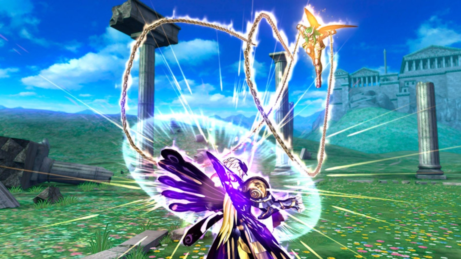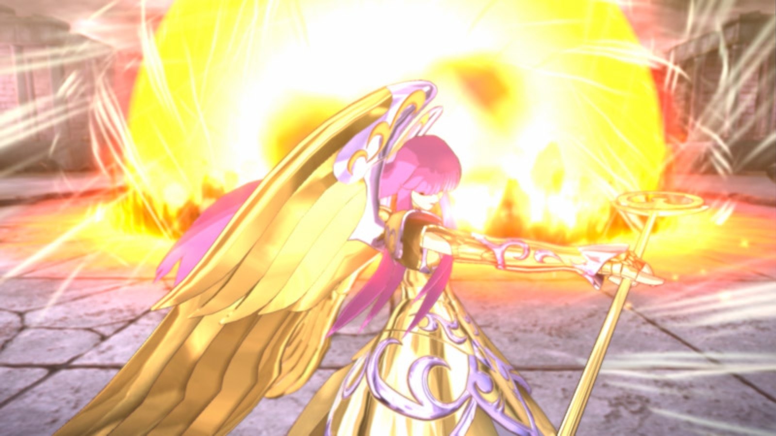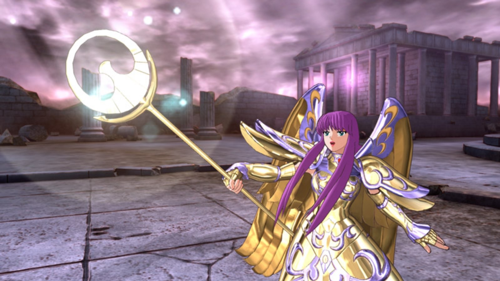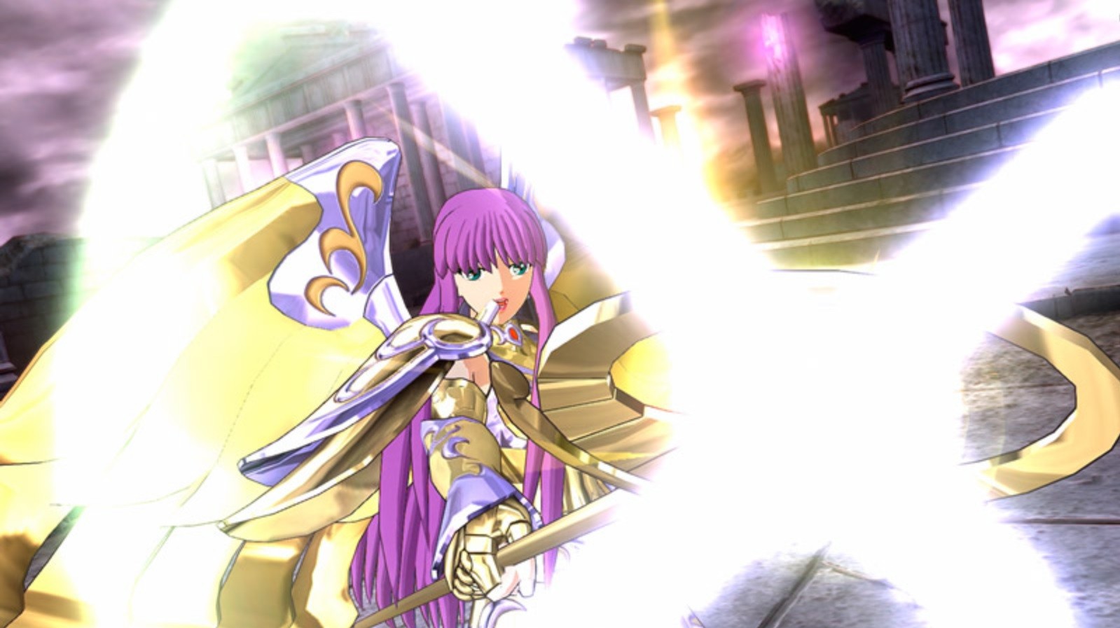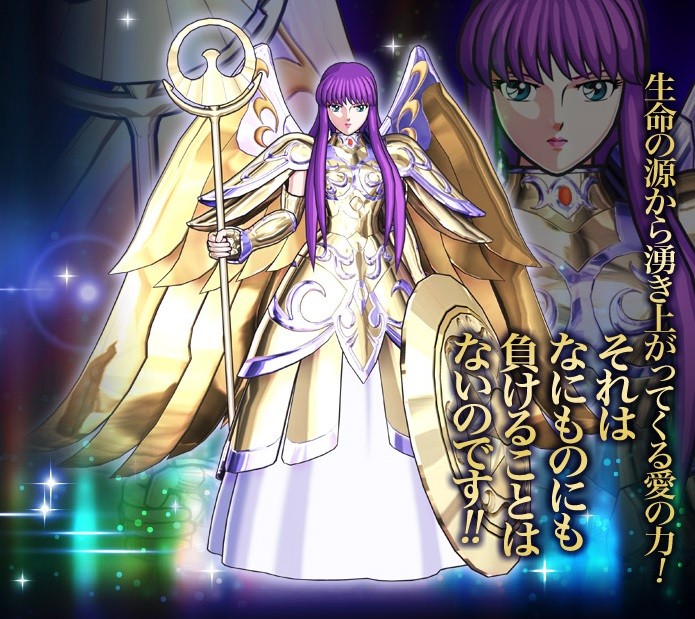 La Déesse Athéna : Ses attaques → Boule d’énergie vitale (生命の球) et Lumière qui nettoie les étoiles (星浄の光)