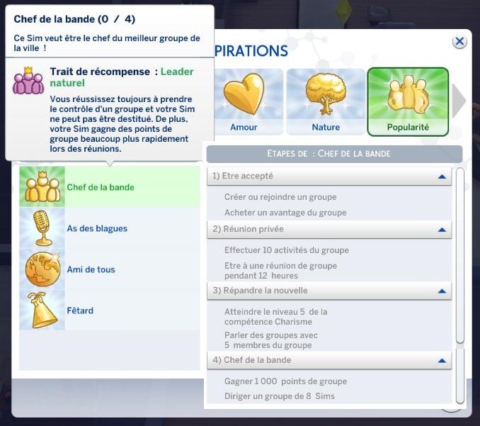 Les Sims 4 - Vivre Ensemble - Aspiration Chef de la Bande Les Sims 4 - Vivre Ensemble - Traits Machine à Danser et Initié