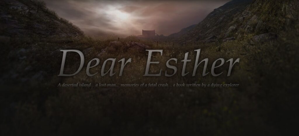 Dear Esther propose une balade de presque 2 heures dans les Hébrides, un archipel dans l’Ouest de l’Écosse. Tout comme le jeu The Park ou Firewatch, il s’agit d’un walking-simulator. Le but du joueur sera d’avancer afin de dévoiler l’histoire qui se raconte au fur et à mesure de nos découvertes. Aucune autre action n’est demandée de la part du joueur.
