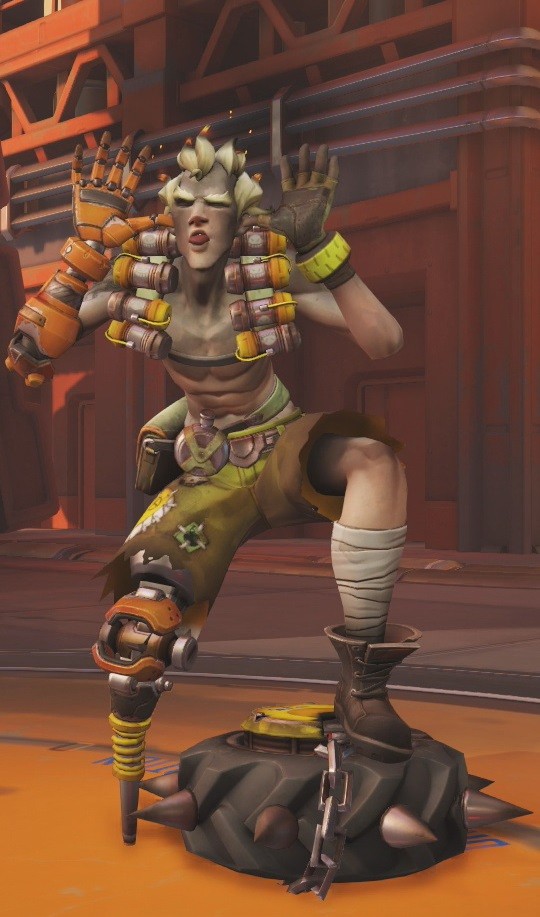Chacal est parfaitement équipé pour tout faire péter ! Ses grenades rebondissantes sont très utiles pour garder les ennemis à distance tandis que ses pièges sont un bon moyen d’immobiliser ses cibles. L’utilisation de ses mines permet d’être créatif puisqu’elles peuvent être employées défensivement mais aussi offensivement : avec un peu de pratique Chacal peut les utiliser pour se propulser dans des endroits de la carte inaccessibles autrement. Son Ultime est tout aussi explosif car il s’agit d’une roue téléguidée capable de faire sauter tout un groupe d’ennemis.