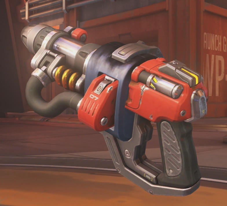 Avec son pistolet, Torbjörn tire des rivets à longue portée ou des projectiles de métal surchauffé en petites rafales à courte portée.
