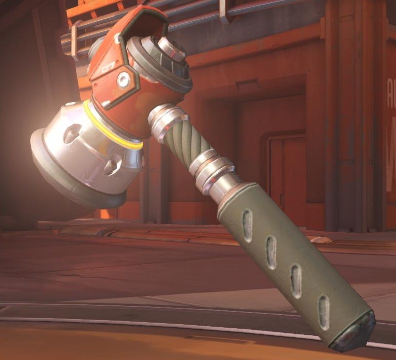 Torbjörn utilise son marteau polyvalent pour construire, améliorer et réparer des tourelles, et peut l’utiliser comme arme en cas d’urgence.