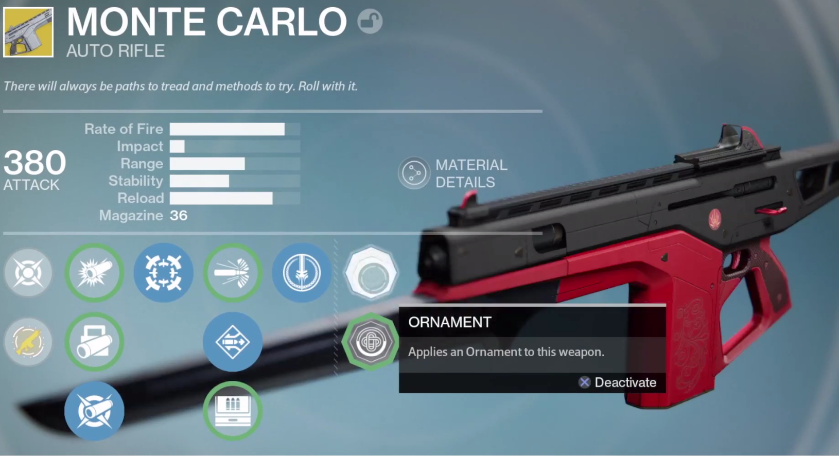 A noter également la présence d’Ornements, des nouvelles améliorations permettant de modifier l’aspect des armures mais aussi de certaines armes, vous verrez quelques exemples dans cet article.