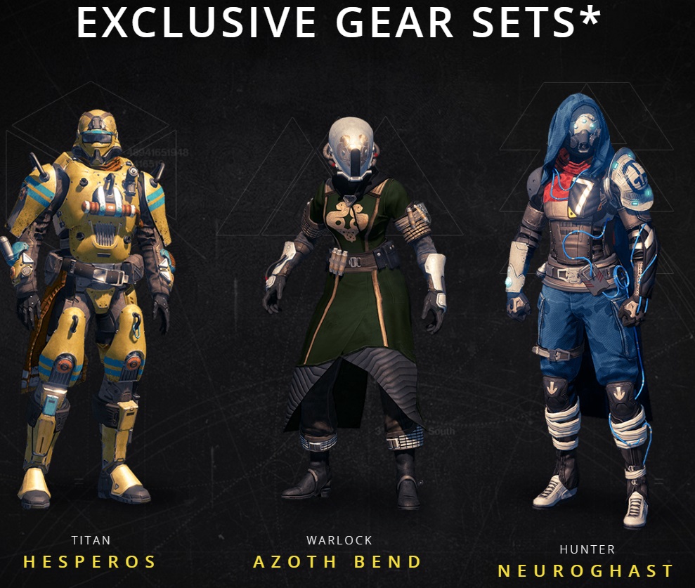 Voici les éléments listés en tant qu’exclusivité jusqu’à l’automne 2017 sur la page officielle de Destiny la Collection :