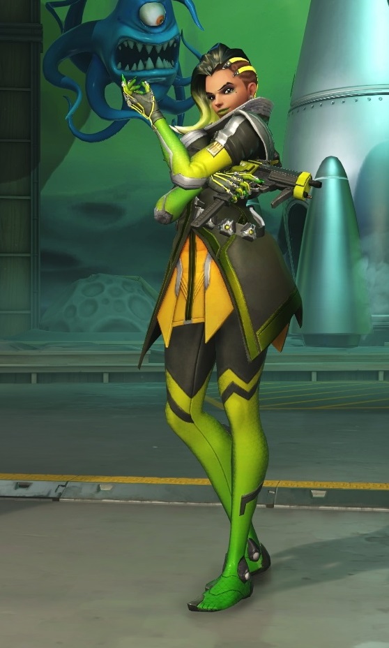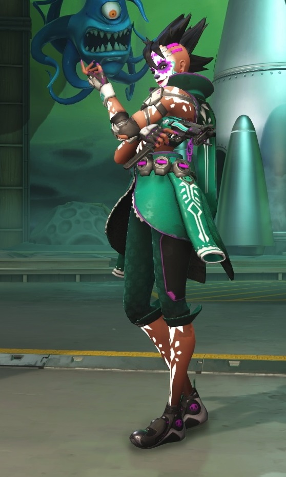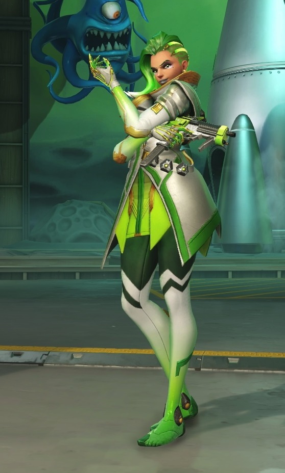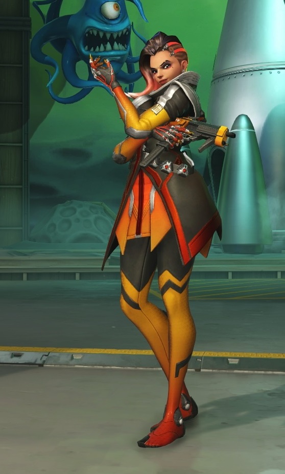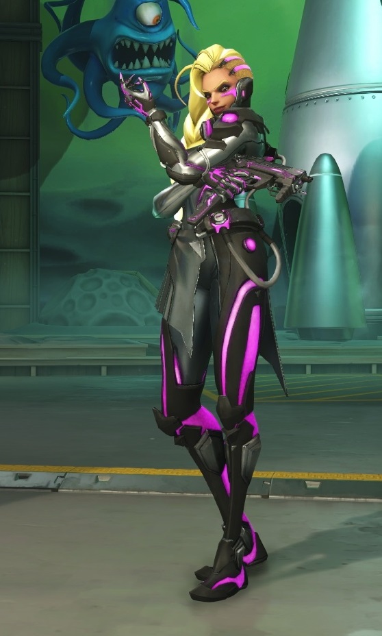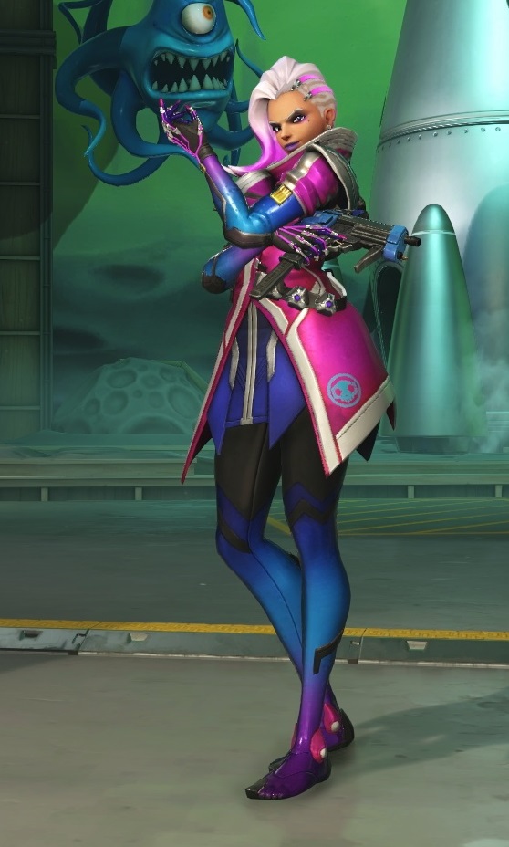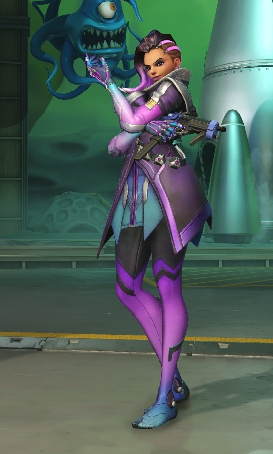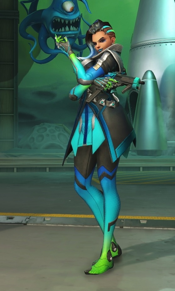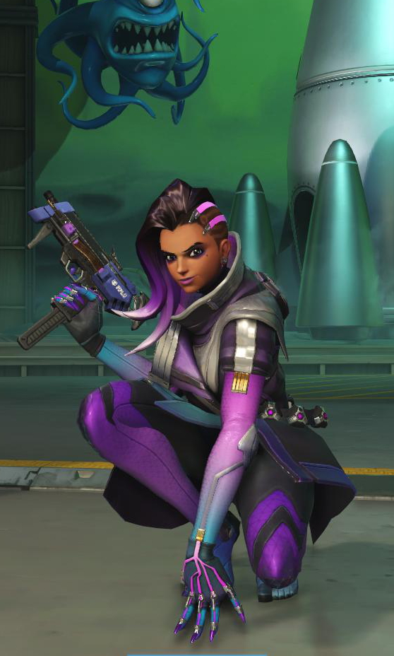 Très efficace à courte portée grâce à son pistolet mitrailleur, Sombra est une hackeuse difficile à atteindre avec ses capacités d’invisibilité et de téléportation. Elle a également la possibilité de pirater ses ennemis pour les priver de leur capacité, mais aussi les packs de soin pour empêcher l’équipe adverse de s’en servir. Enfin, son ultime désactive temporairement les boucliers des ennemis sur une large zone.