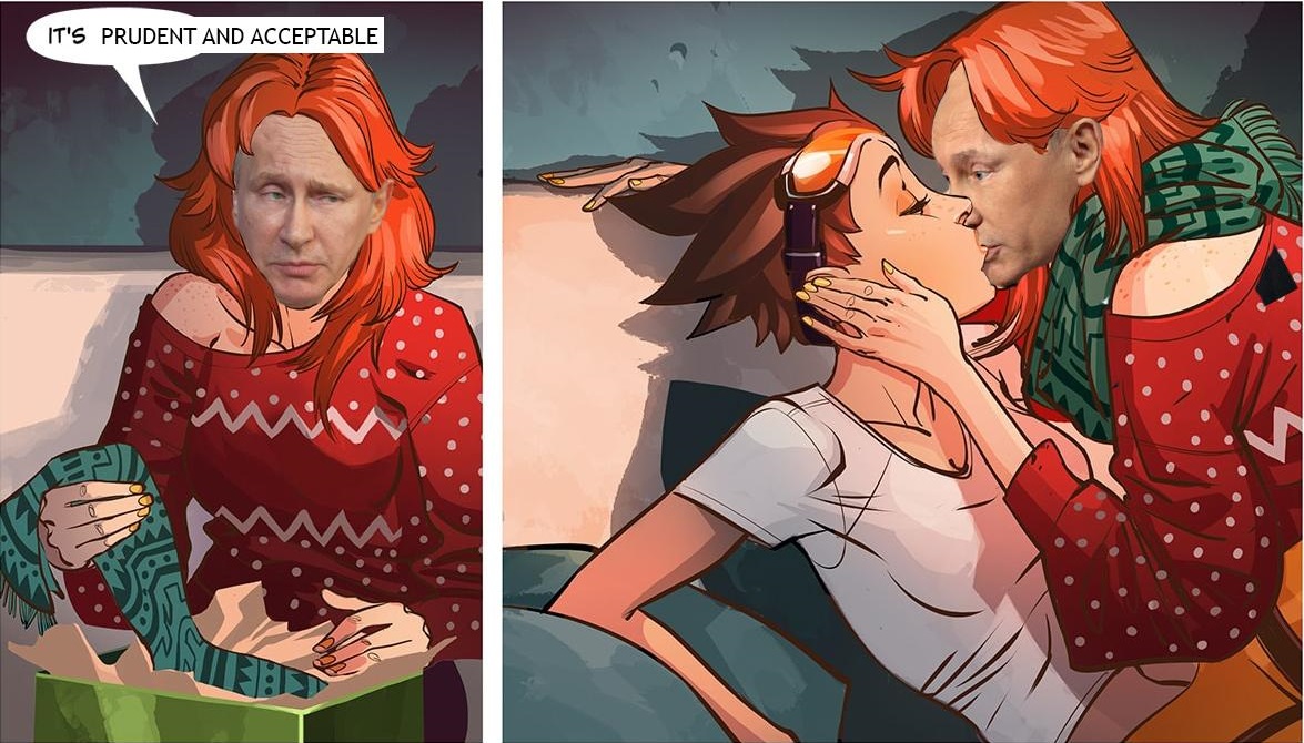 Toute cette polémique aura au moins permis de découvrir l’édition officieuse russe du comic Tracer Réflexions avec en guest star le président Vladimir Poutine :