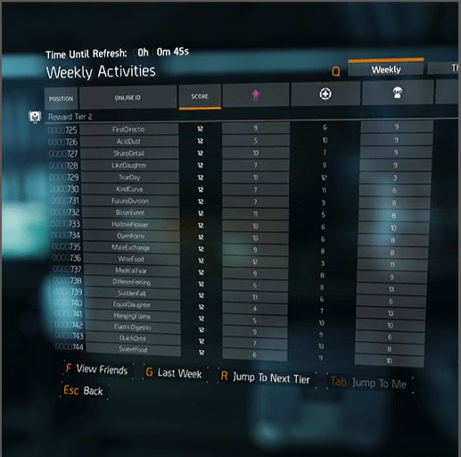 The Division – Mise à jour 1.6 : Les premiers visuels pour les leaderboards DZ en fuite.