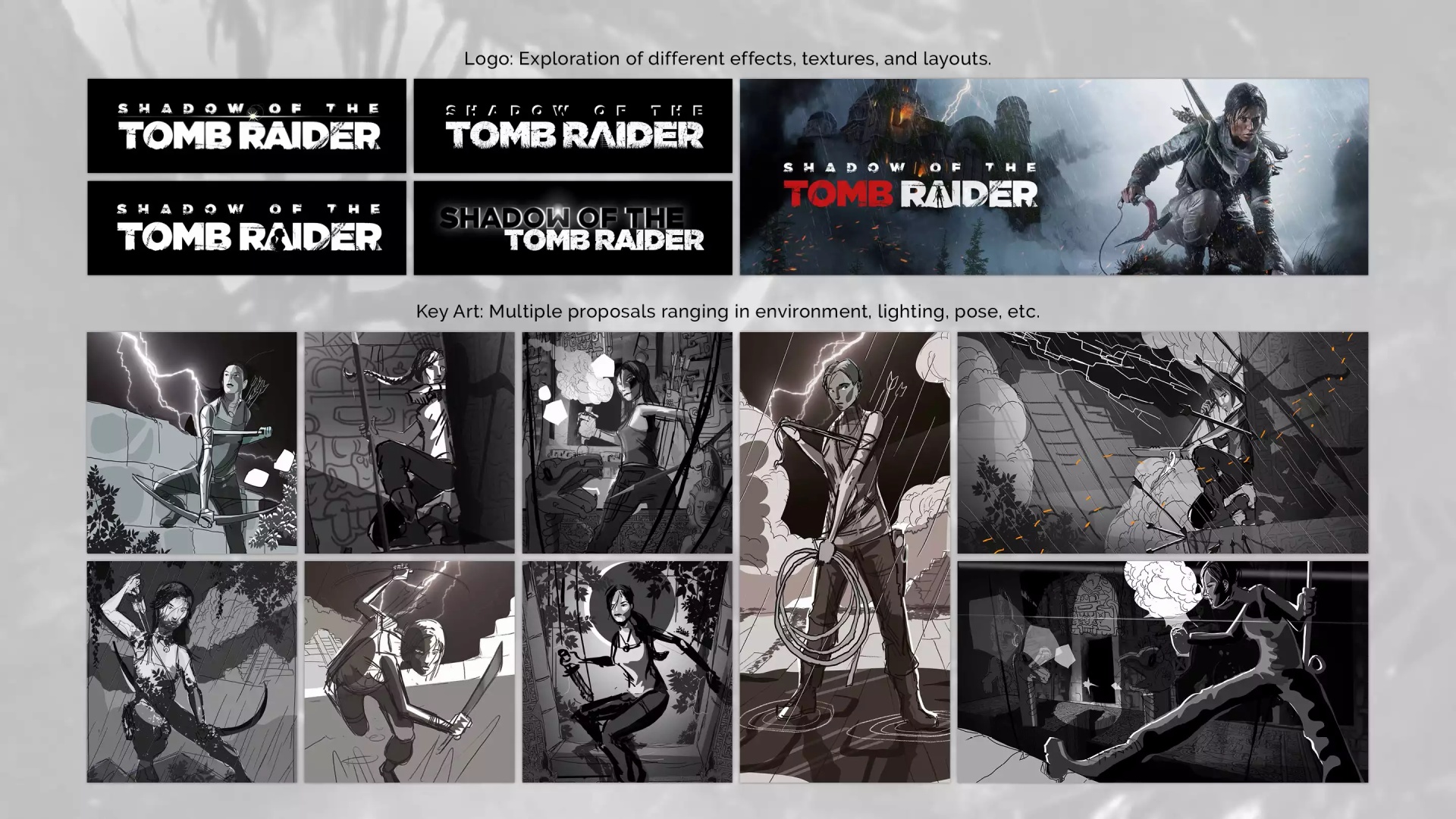 Après une photo volée dans le métro de Montréal, cette fois c’est une planche de concept art qui s’est échappée d’un portfolio du site de TakeOff, une agence marketing basée à Los Angeles. On y découvre quelques croquis de Lara et du logo. L’occasion de se faire une première idée de l’ambiance et des armes du titre.