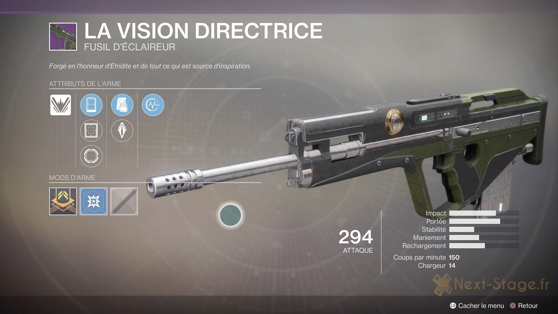 - Juste//Visée HCS : Augmente légèrement la portée • Augmente légèrement la stabilité • Augmente légèrement la vitesse de maniement.