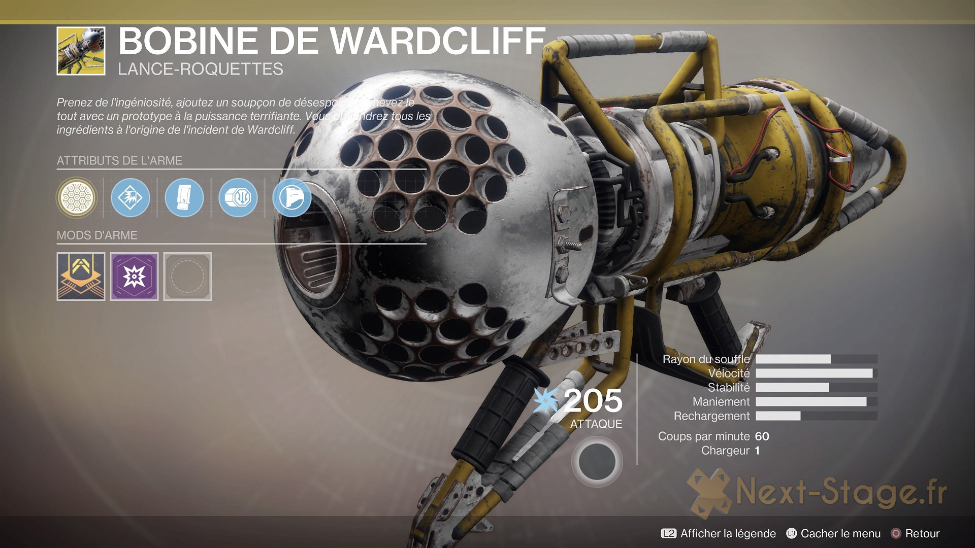 • Bobine de Wardcliff – Lance-roquettes [29 éclats légendaires] – Puissance : 345