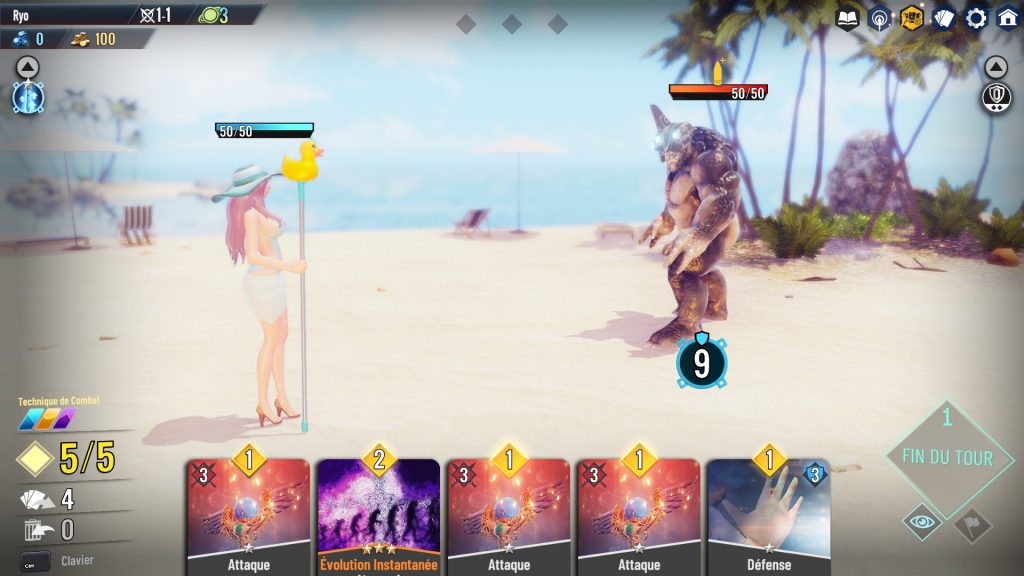 Durant les affrontements, il est possible d’utiliser des cartes d’Attaque (rouge), de Défense (bleu), des Constantes (jaunes) et des Instantanées (violettes). Les cartes ont toutes un coût, il est donc nécessaire de bien faire attention à sa jauge de mana pour réaliser les actions désirées durant son tour.