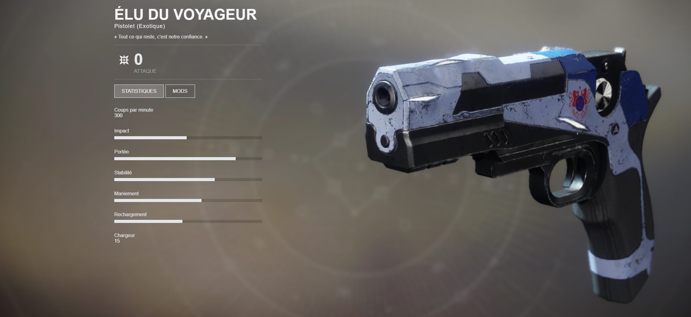 ÉLU DU VOYAGEUR : Catalyseur, stats, perks, lore, ornements.