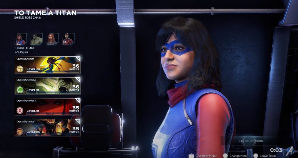 - Quand les joueurs sélectionnent leur mission, ils se retrouvent sur le Quinjet pour changer de héros, lancer le matchmaking, choisir leur loadout ou leur personnalisation :