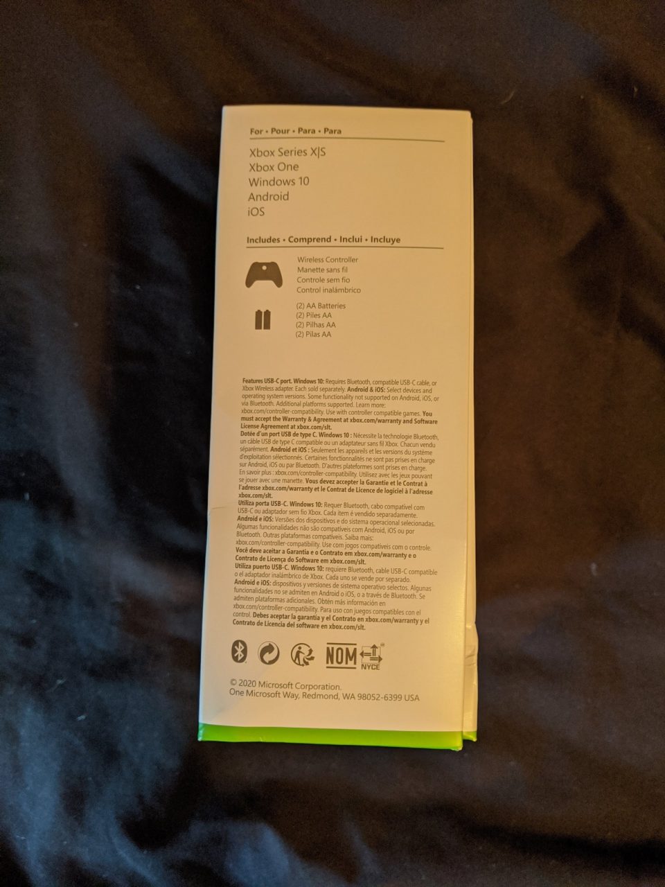 Cela fait un petit moment que des rumeurs évoquent une déclinaison moins puissante et moins chère de la Xbox Series X (nom de code Lockhart). A priori, l’existence de cette console vient d’être confirmée avec la fuite de la nouvelle manette officielle dans le commerce. Sur la boite, on voit clairement que le contrôleur est compatible avec la Xbox Series X et S :