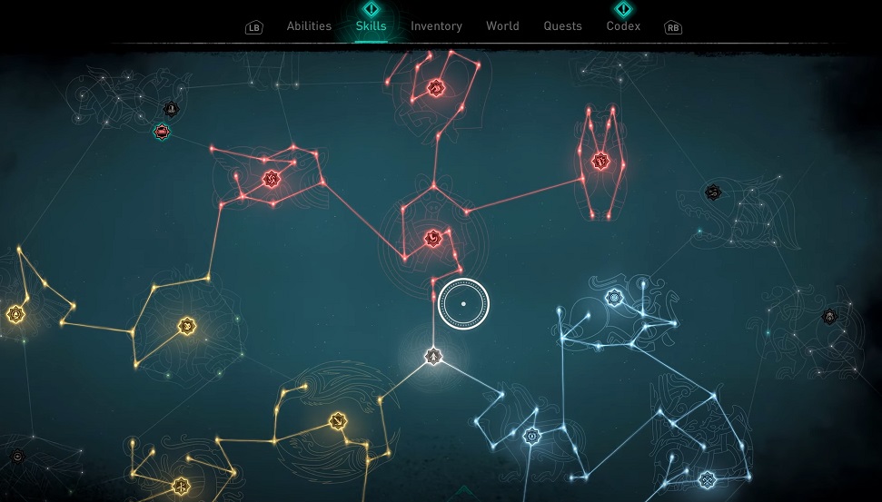 Pour la première fois, nous voyons le système de compétences de Valhalla, qui s’annonce radicalement différent de celui de Odyssey. Par ailleurs, des tomes des connaissances sont dispersés dans le monde afin de vous apprendre ou d’améliorer des compétences déjà obtenues.