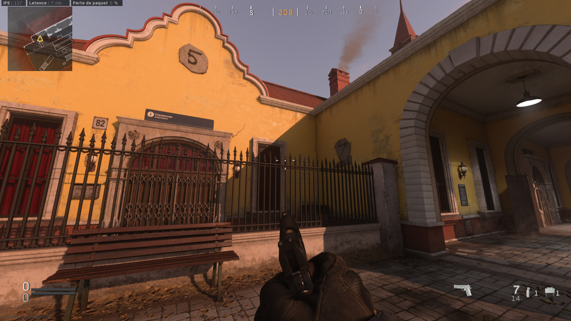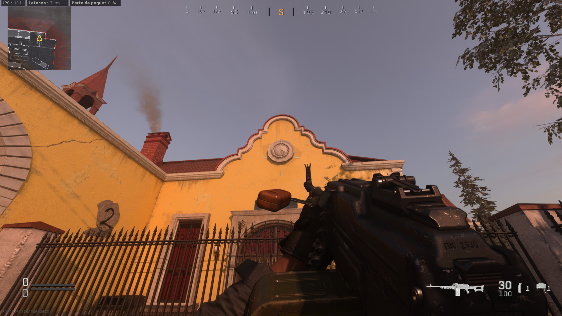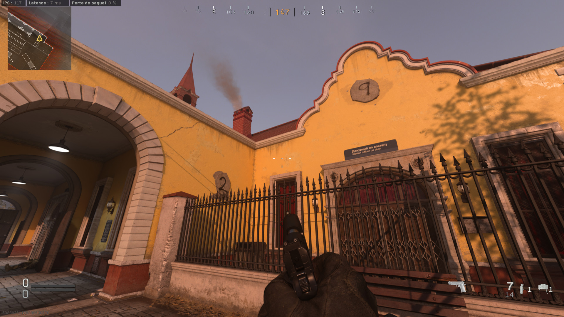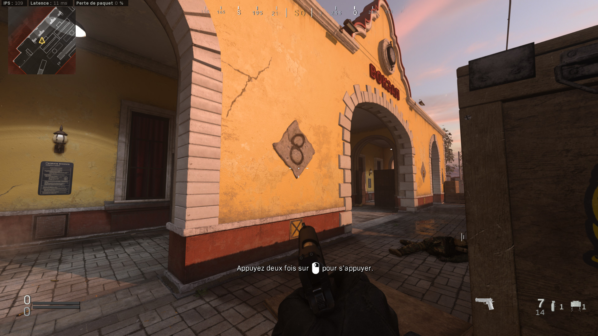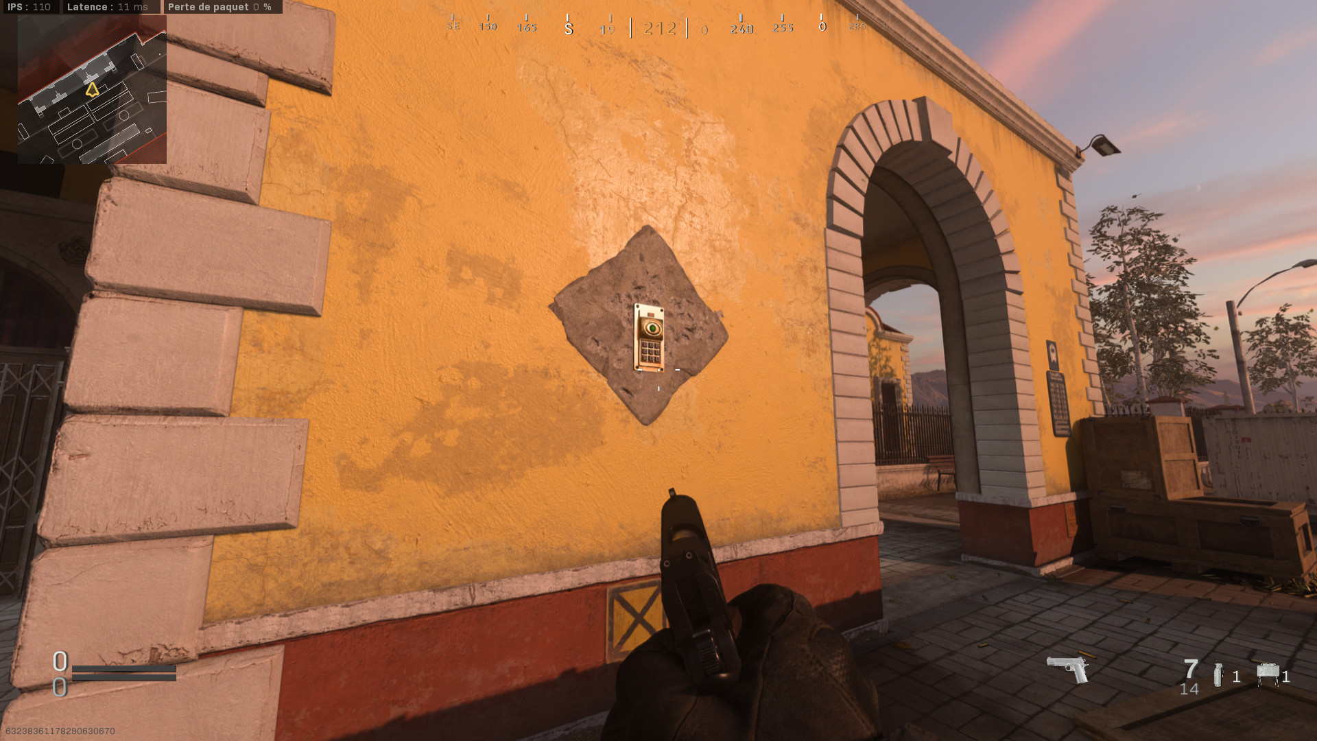Vous allez voir c’est relativement simple. Sur la façade jaune du bâtiment se trouve plusieurs éléments décoratif en pierre (boucliers, plaques etc). Vous allez devoir tirer un tas de balles (beaucoup, vraiment beaucoup) sur ces éléments de décors pour les détruire et faire apparaitre 5 chiffres et un digicode.