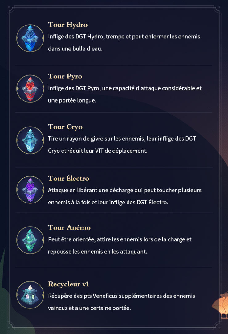 Mécanismes : améliorer le niveau de vos tourelles avec les jetons veneficus