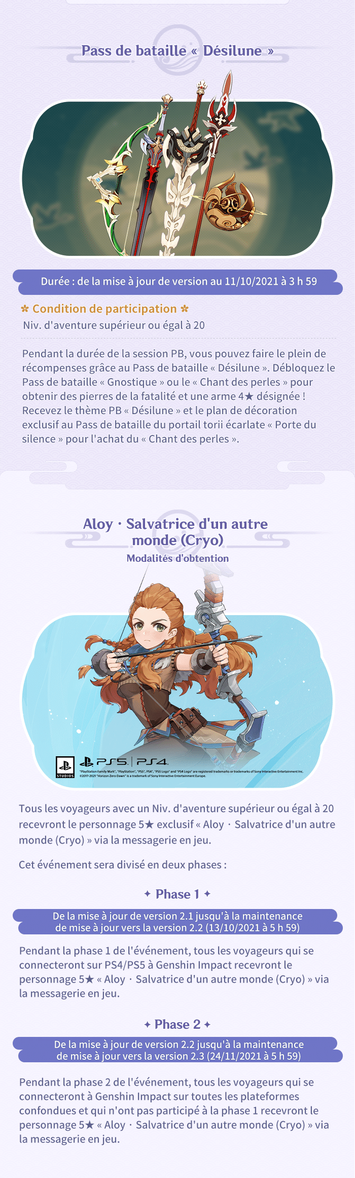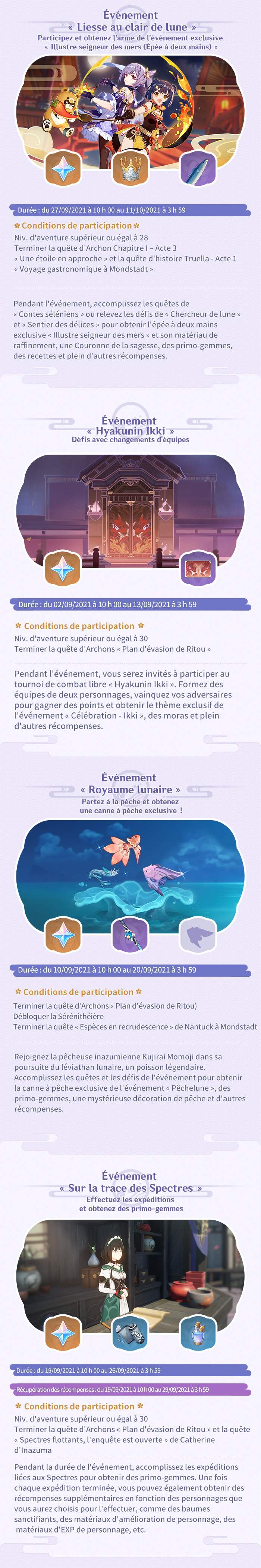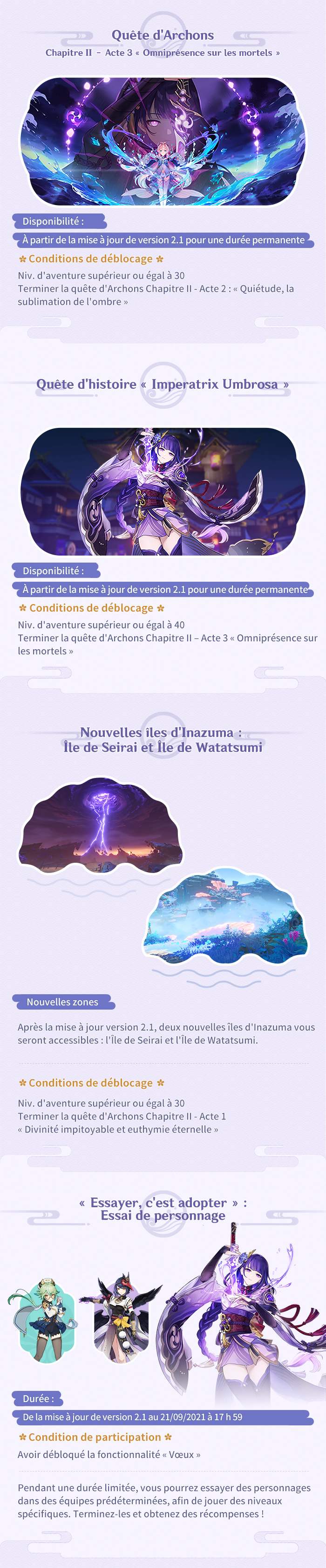 A l’occasion de la sortie plus que prochaine de la mise à jour 2.1, Mihoyo nous partage des infographies résumant tout ce qui attend les voyageurs pour les prochaines semaines.