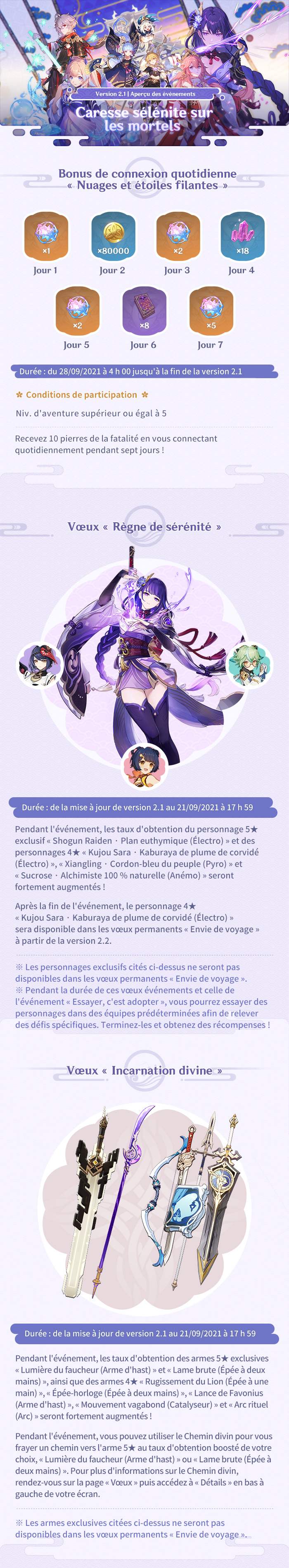 Event, Vœux, Connexions quotidiennes, découvrez tout le contenu évènementiel qui arrive avec la Maj 2.1 de Genshin Impact.