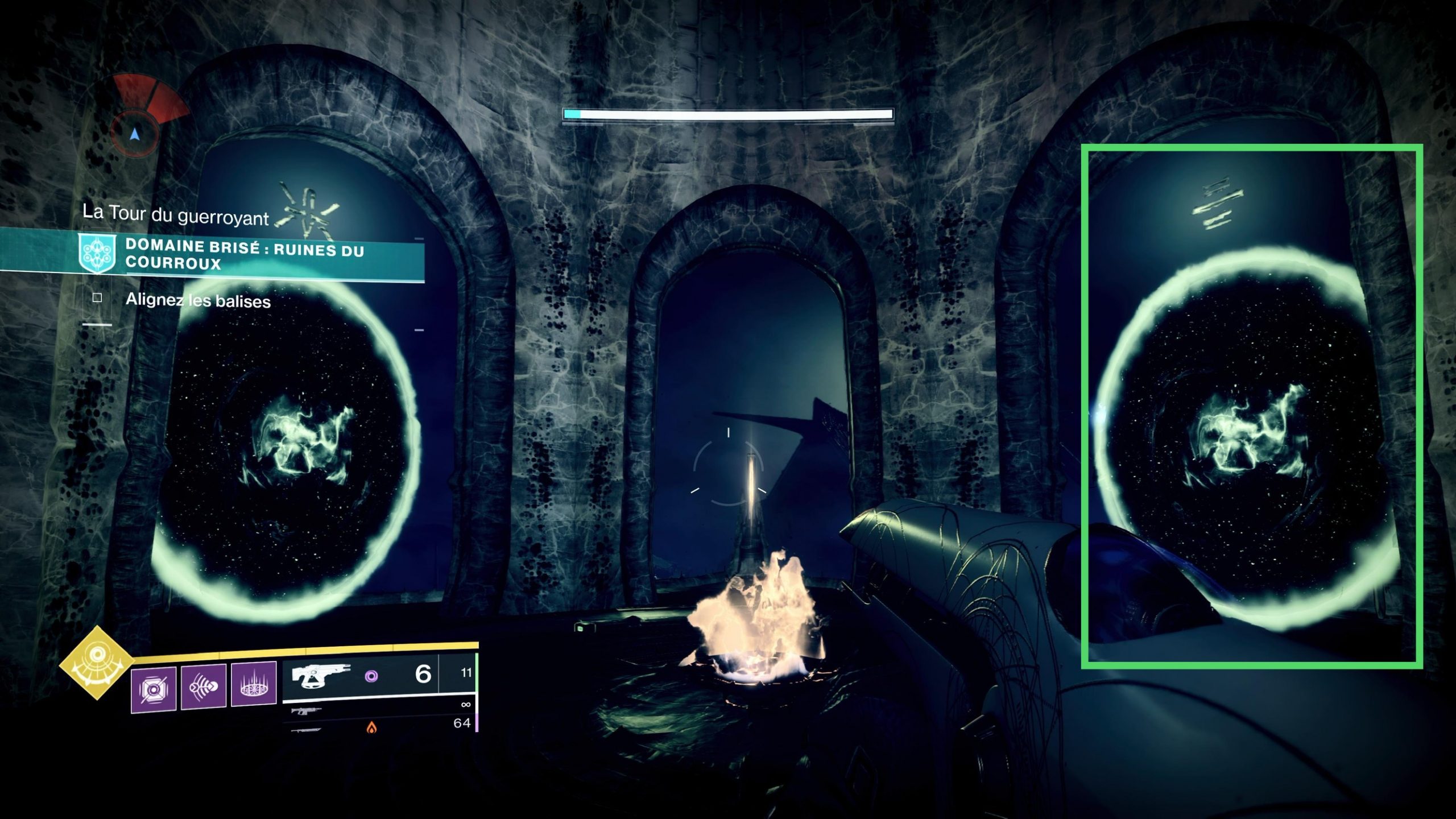 - Répétez la même opération pour faire apparaître le dernier portail qui vous téléportera à la zone du boss.