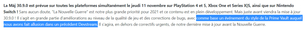 Il s’agira d’une mise à jour de changements de qualité de vie et de correction de bugs, et sera vraisemblablement la dernière avant la sortie tant attendue de La Nouvelle Guerre.
