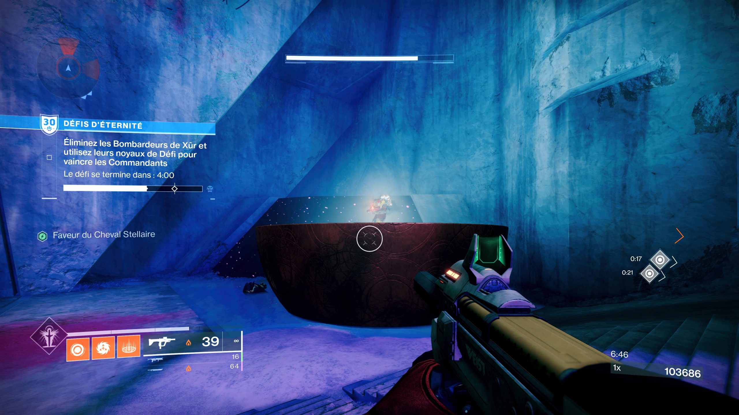 Ici il vous faut tuer les commandants en tuant dans un premier temps les bombardeurs de Xur. Ramassez leur noyau et lancer le sur les commandant pour détruire leur bouclier.
