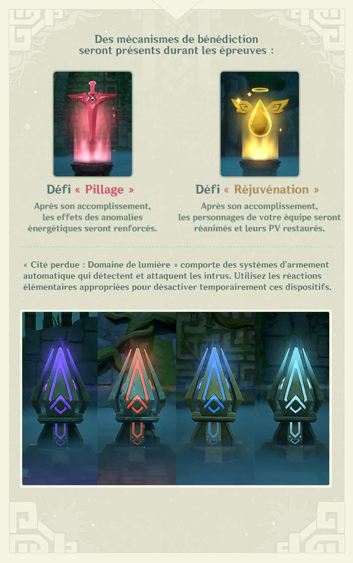 MiHoYo nous donne des détails sur le prochain évènement de Genshin Impact« Cité perdue : Domaine de lumière ». Rien ni personne n’entre jamais dans la cité perdue. Rassemblez votre équipe et préparez-vous à plonger au cœur de ses secrets les plus profonds.