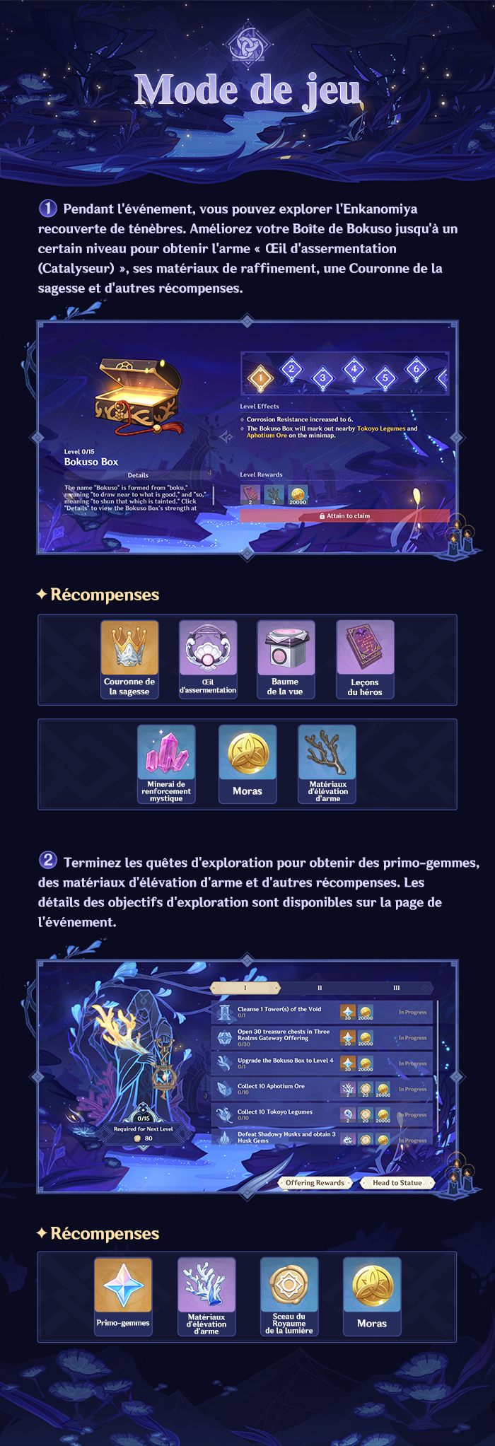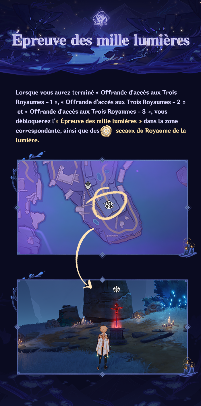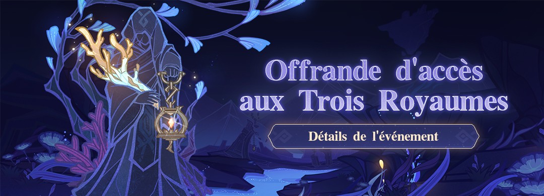 Après la fin de la version 2.5, vous ne pourrez plus accéder à la zone de l’événement « Offrande d’accès aux Trois Royaumes », ni ouvrir les coffres ou récupérer les récompenses. N’oubliez d’explorer et de récupérer vos récompenses tant qu’il est possible de le faire.
