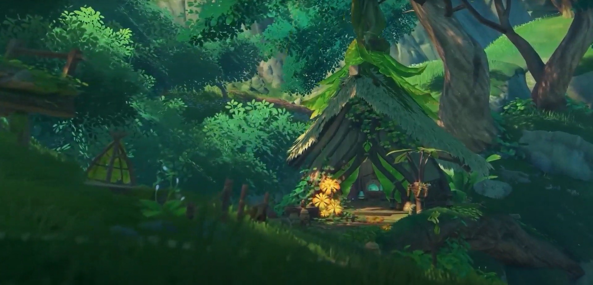Nous n’aurons droit qu’à quelques images d’environnements très verdoyants qui nous rappellent la jungle. L’architecture des bâtiments que l’on peut apercevoir me font un peu penser au dessin animé Aladdin. Sur le dernier visuel que l’on nous présente, on peut voir au loin une zone plus aride sans végétation, ressemblant à un désert